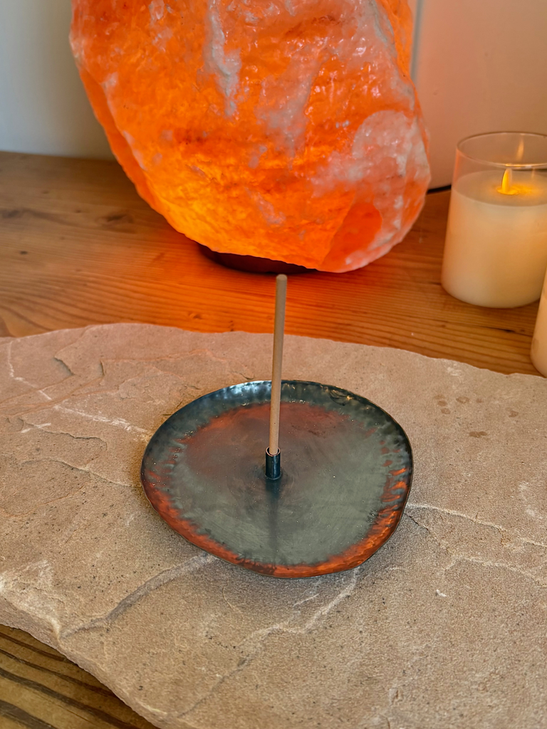 We love this unique Copper incense holder. It works with both rope incense and regular incense sticks of all sizes- simply remove the gold hook and burn!